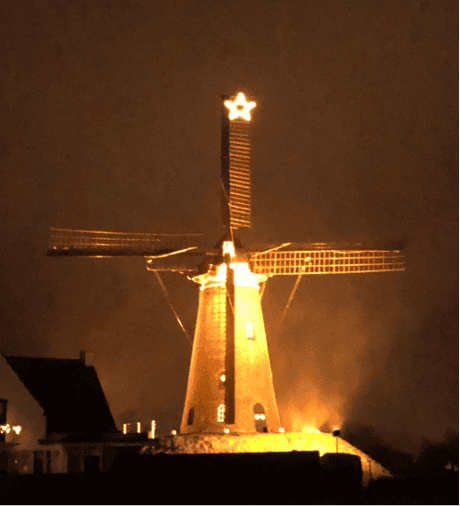 Op 13 december wordt de ster weer hoog in de wieken bevestigd. Deze blijft tot ongeveer 3 koningen staan.